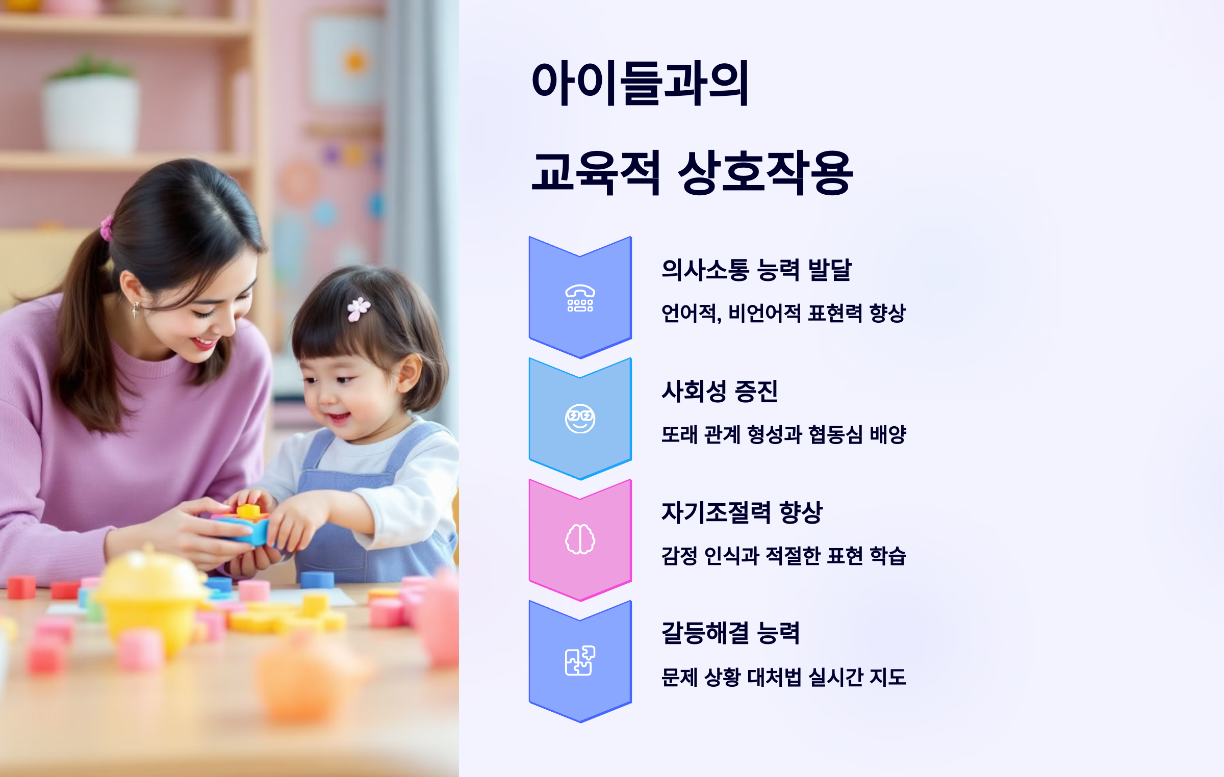 📚 다음 섹션에서는 교사와 아이 사이의 교육적 상호작용에 대해 구체적으로 알려줄게! 어떤 방식으로 아이와 소통하는지 궁금하지? 😍