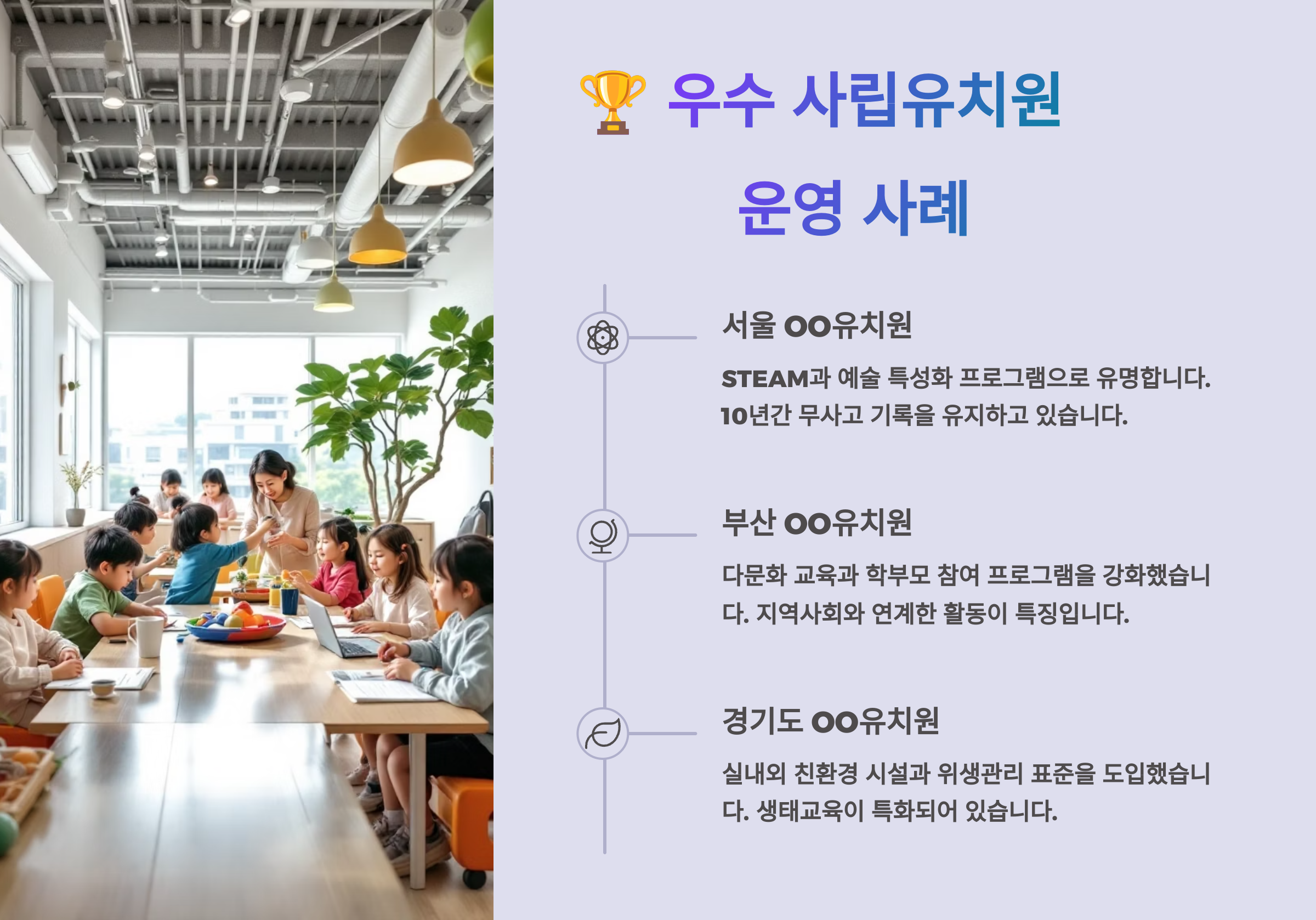 다음은 전국의 우수한 사립유치원 운영 사례를 소개할게요! 🏆