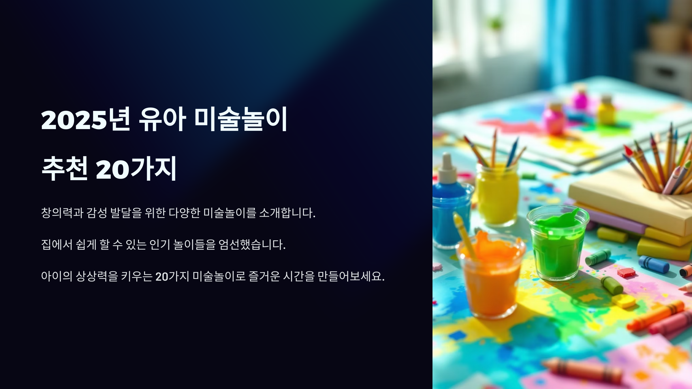 🎀 2025년을 맞아 집에서도 쉽게 할 수 있는 20가지 미술놀이를 추천해봤는데요, 어떤 놀이든 가장 중요한 건 '자유롭게 표현하는 즐거움'을 느끼게 해주는 거예요. 🎉🧸