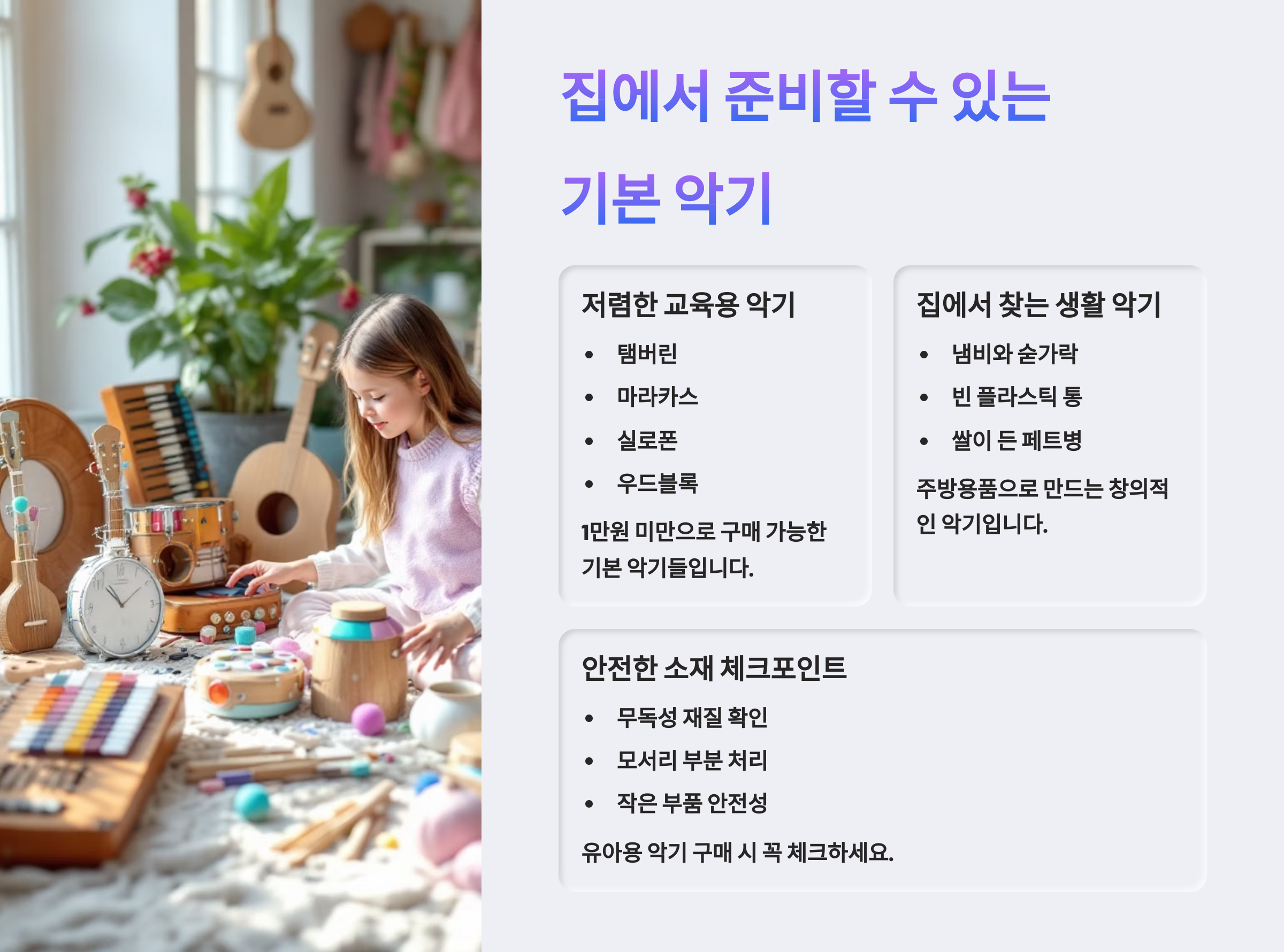 악기는 비싸지 않아도 괜찮아요! 집안 곳곳이 음악 놀이방이 될 수 있답니다! 🎉