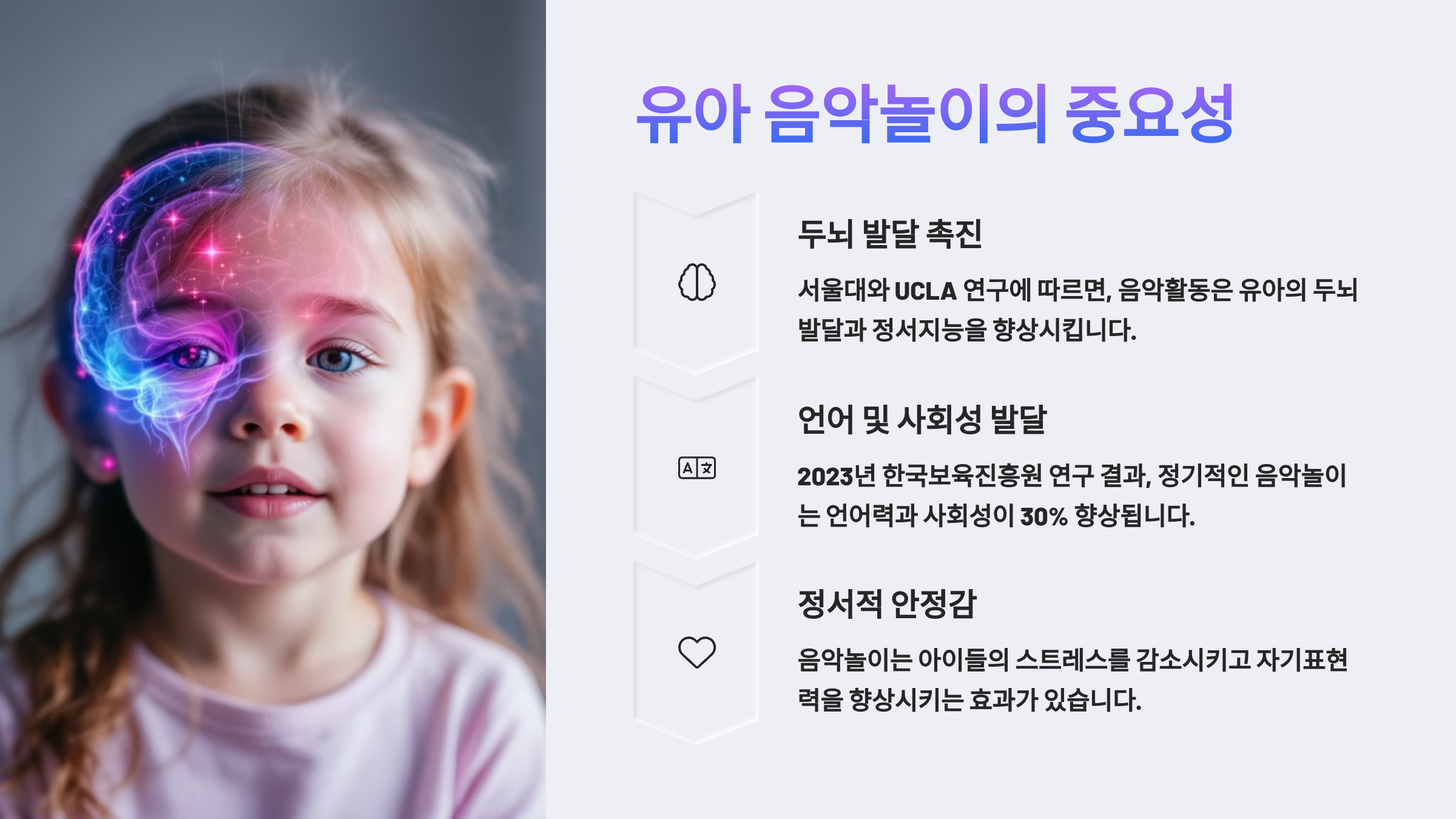 음악놀이는 단순히 재미를 넘어서 아이의 두뇌 발달, 감성 지능, 사회성까지 키워주는 정말 중요한 활동이에요. 🎵