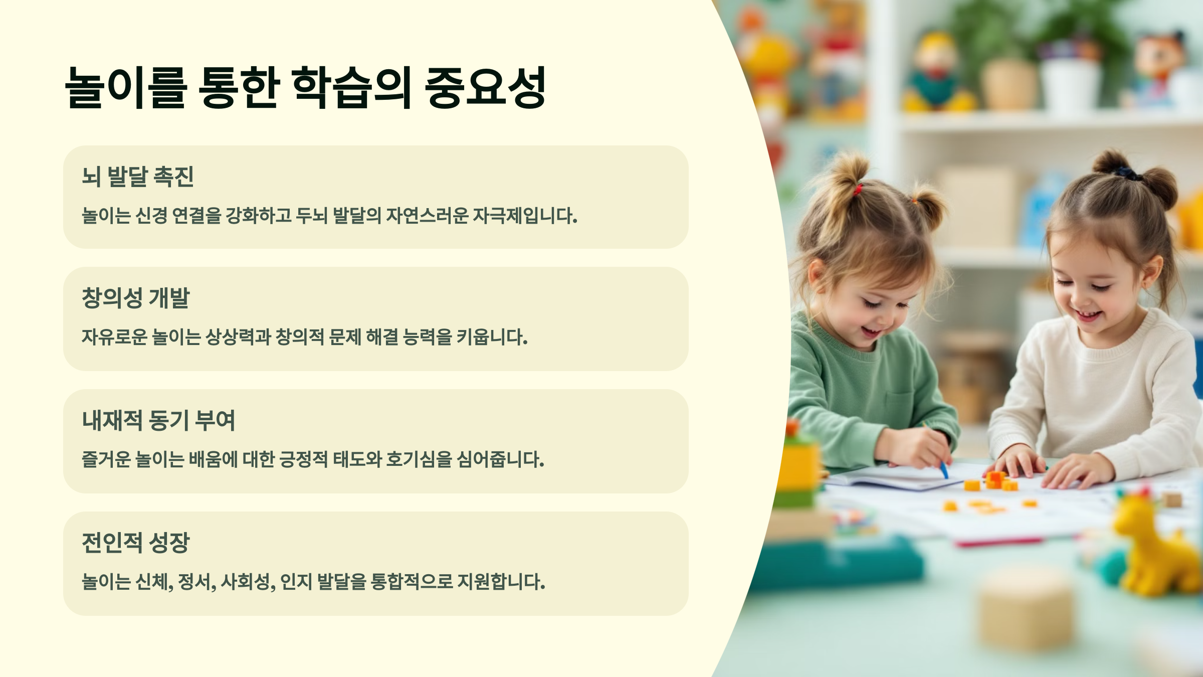 다음은 🎨 놀이를 통한 학습의 중요성 섹션으로 이어갈게요! 놀이가 왜 중요한지, 그리고 어떤 영향을 주는지 함께 알아봐요.