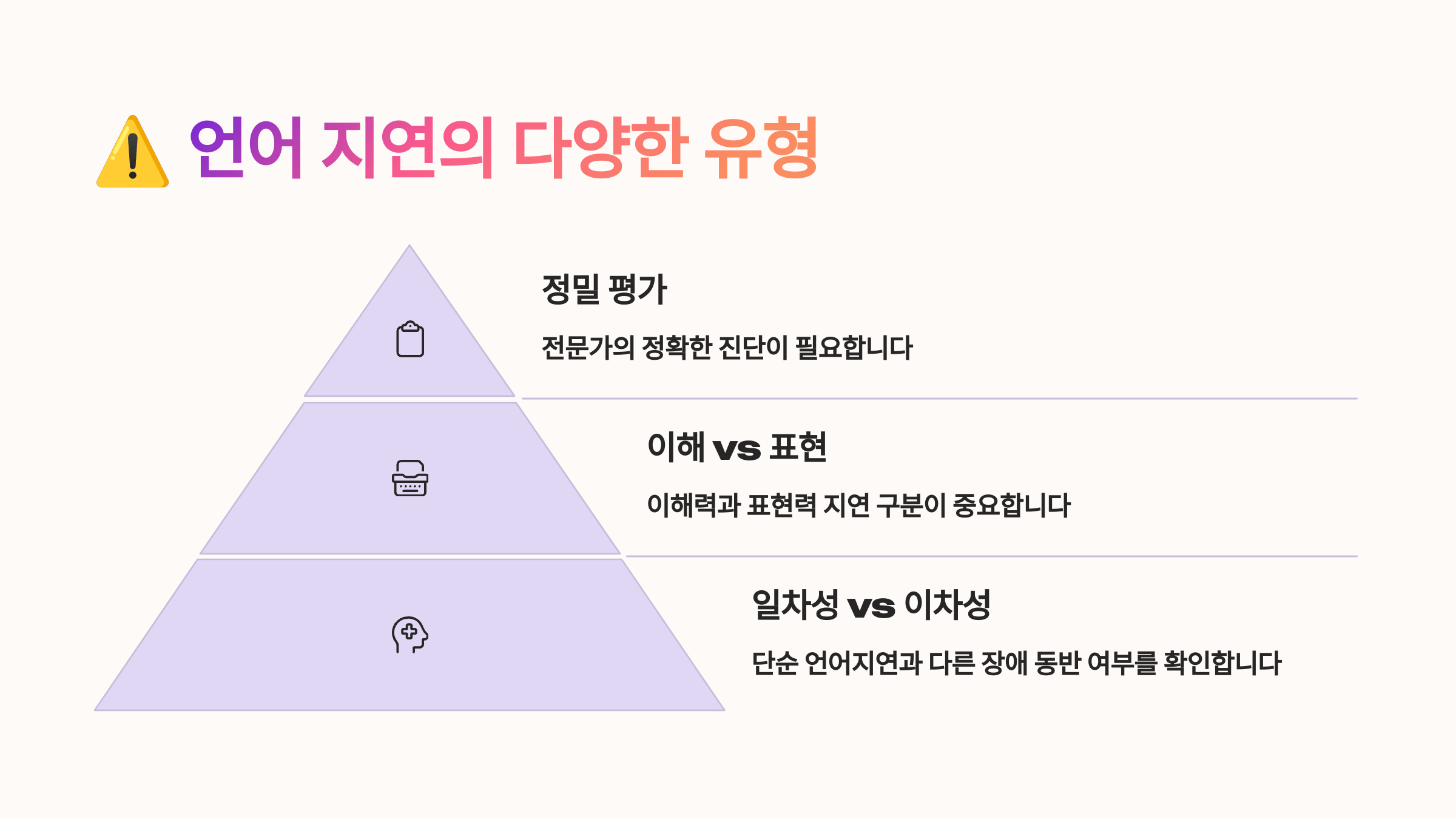 다음은 ⚠️ 언어 지연의 다양한 유형으로 넘어가 아이의 상태를 더 세밀하게 살펴볼게요.