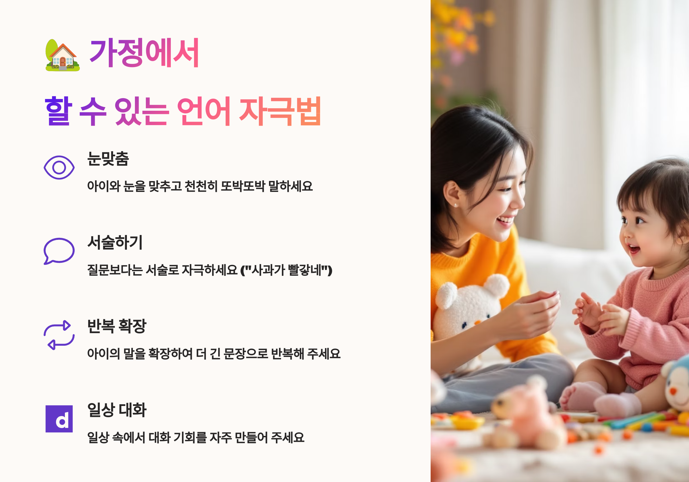 다음은 🏡 가정에서 할 수 있는 언어 자극법을 쉽고 실용적으로 알려드릴게요!