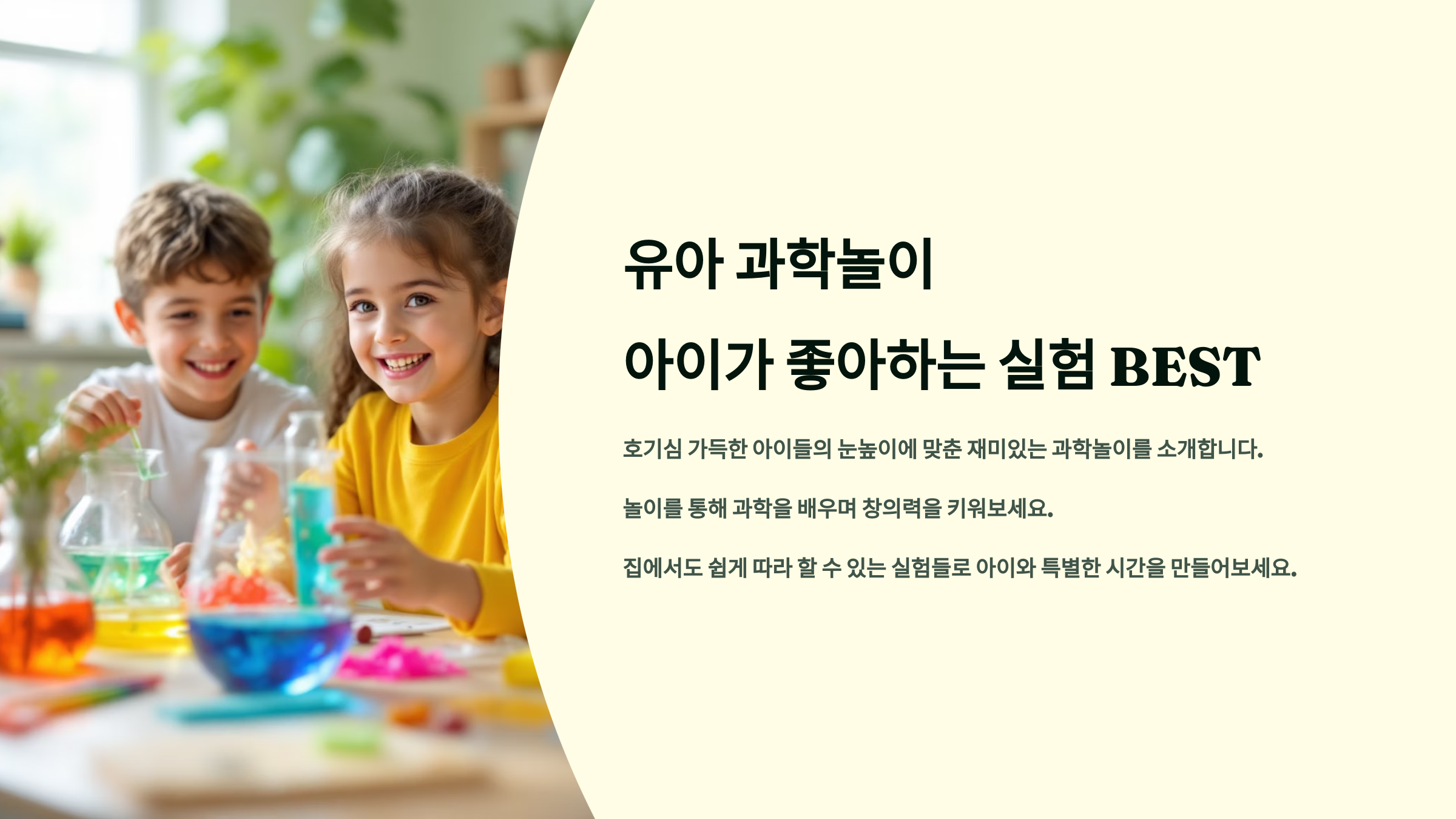 과학은 아이의 눈에 마법처럼 보여요. 특히 유아기에는 직접 보고, 만지고, 실험하면서 배우는 과정이 탐구심과 창의력을 키워주는 데 최고예요. 재료도 어렵지 않고, 집에서도 충분히 가능한 실험이 많아요! 👩🔬🧫