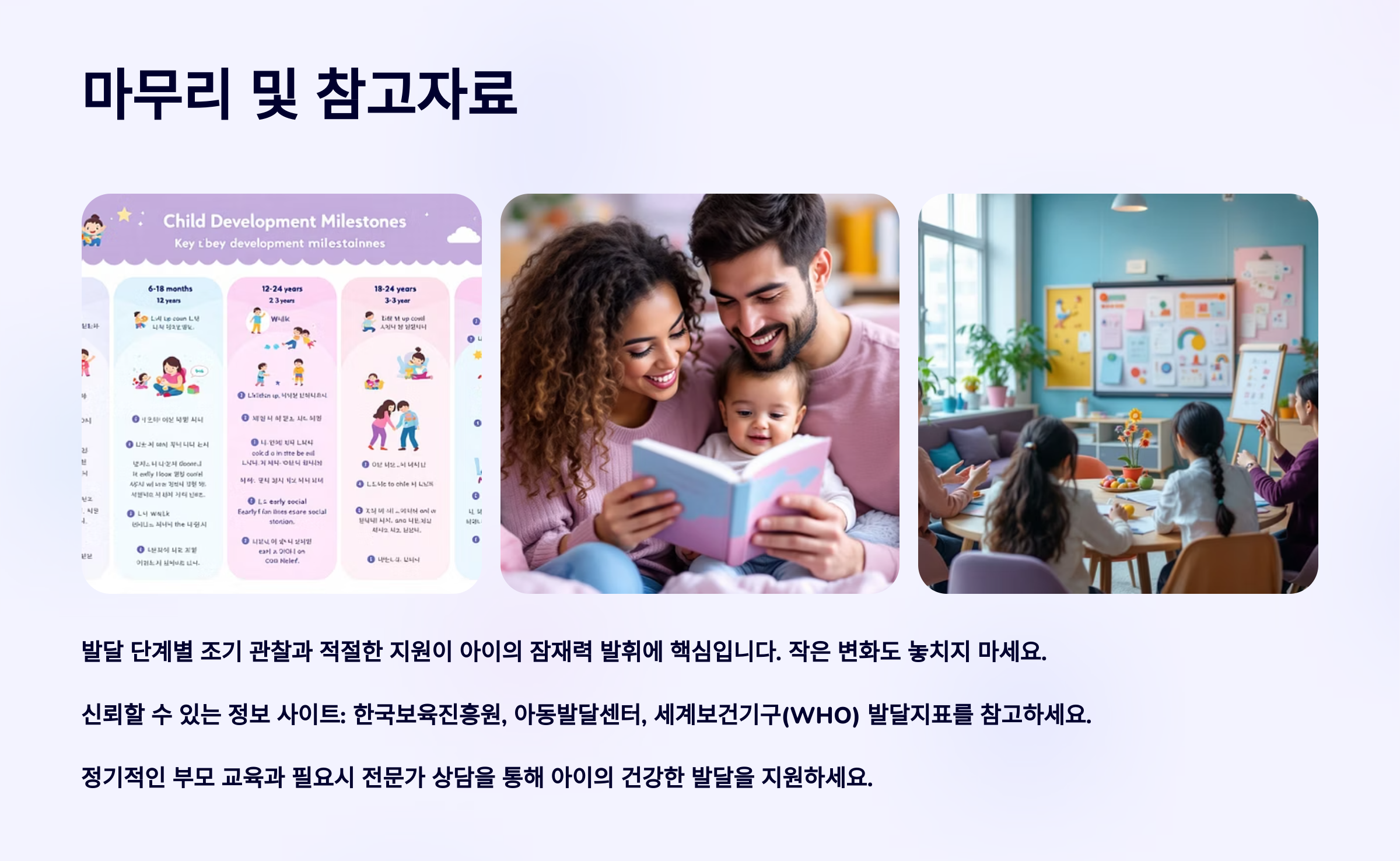 🌈 내가 생각했을 때, 진짜 좋은 양육이란 '아이를 조급하게 키우는 것'이 아니라 기다려주는 것이에요. 오늘은 말이 느려도, 내일은 감정이 깊어지고, 모레는 친구와 웃으며 놀 수 있어요. 그 모든 순간을 함께 지켜보는 것이 부모의 특권이에요.